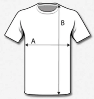 Zoals u in de afbeelding rechts kunt zien is de Breedte van het T-shirt de A lijn. En de lengte van het T-shirt de B lijn.B.